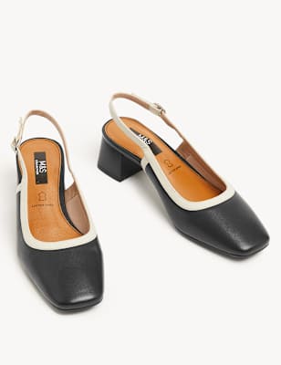 Add a dose of elegance to smart outfits with these leather slingback shoes. They feature an adjustable strap at the back which fastens with a buckle for the perfect fit and chic contrast trims. The mid block heel feels sturdy underfoot, while our pressure-reducing Insolia? technology ensures all-day comfort. Feet stay feeling fresh, thanks to the antibacterial padding.
